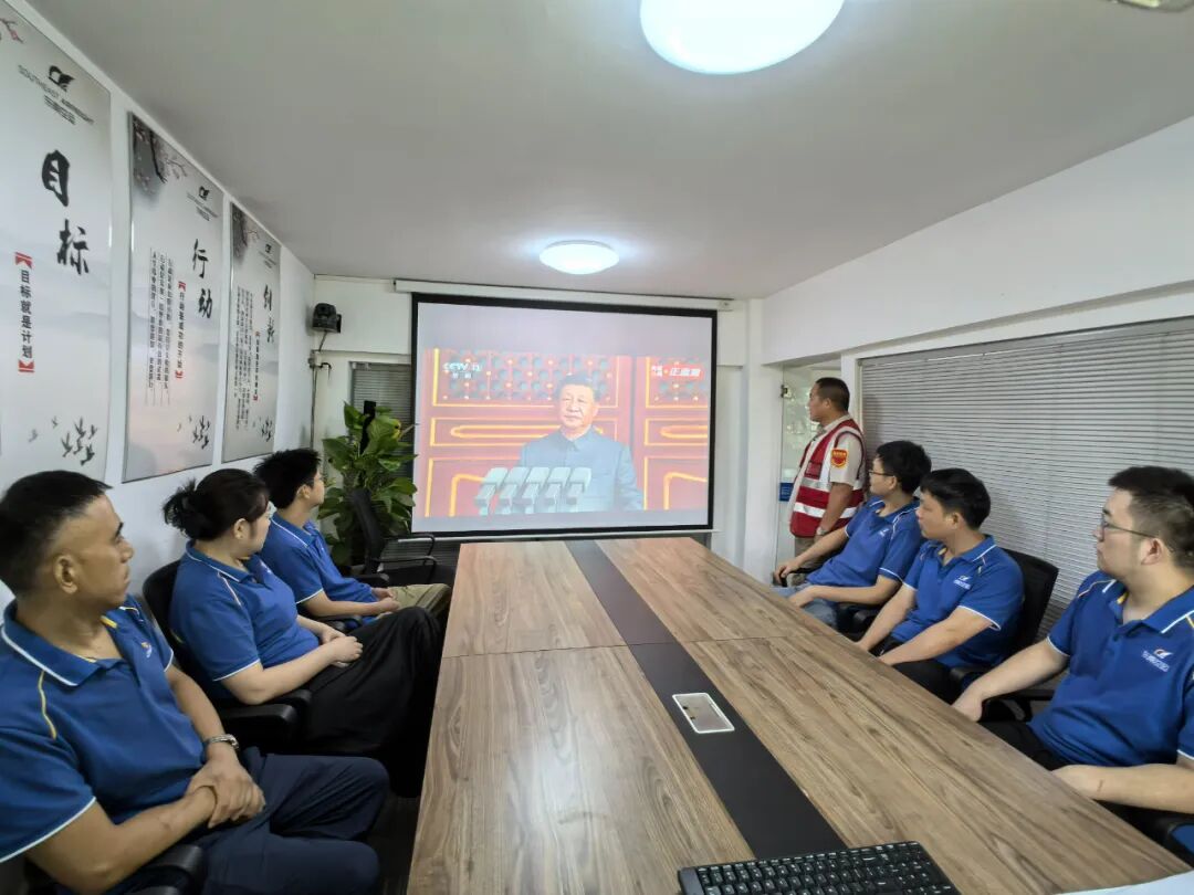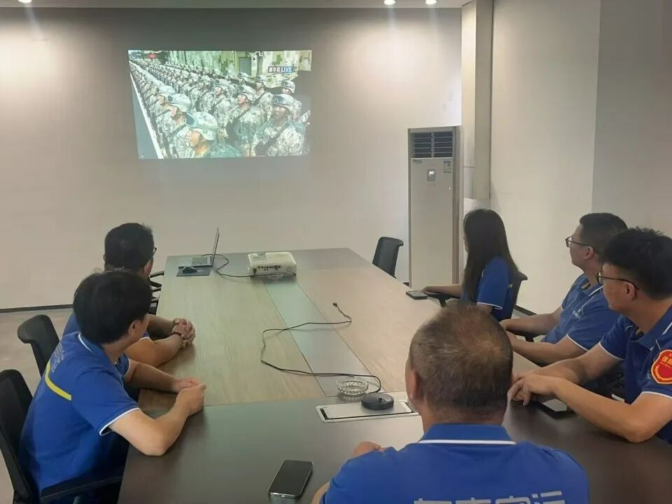 公司组织党员、退伍军人、其他员工,集体观看纪念中国人民抗日战争暨世界反法西斯战争胜利80周年阅兵盛典直播,目睹和感受了国之重器的威武展示和人民军队的强军风貌。铁甲列阵、战机翱翔,充分彰显了国家发展的辉煌成就,有力激发了员工的爱国情怀。